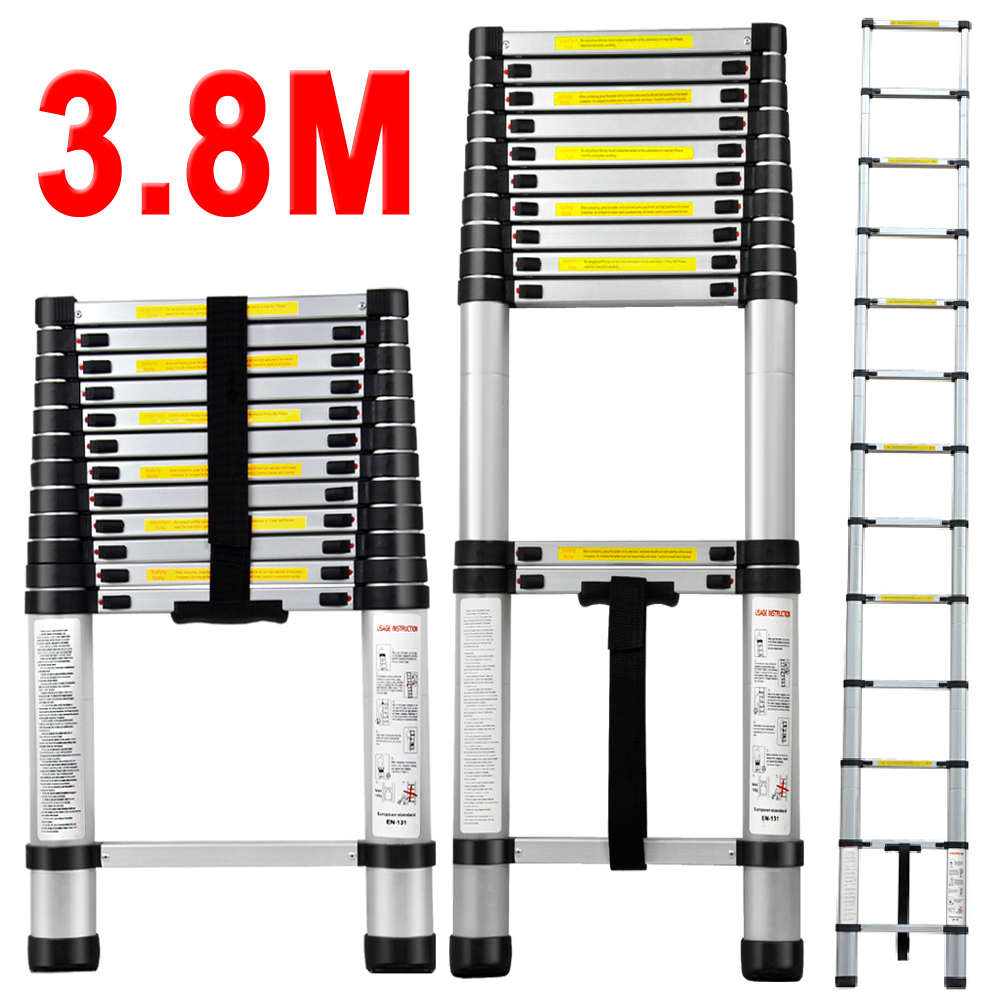 Scară telescopică din aluminiu, 3.8 m lungime, 13 trepte, 1 tronson, extensibilă